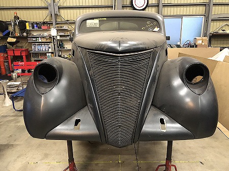 久しぶり に グリル を 装着 し、 ボンネット 締めまして