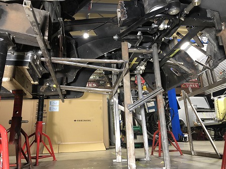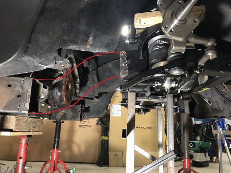 タイヤ も 組み付けた 状態 で ストローク させ、