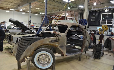 アメリカ ROADSTER SHOP で 製作中 の