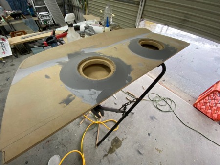 フロントスピーカーの取り付けベースが完成し、