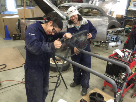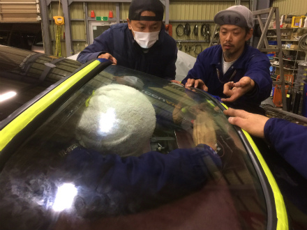 室内 の 天張り を 取り付けて、 前後 の ガラス の