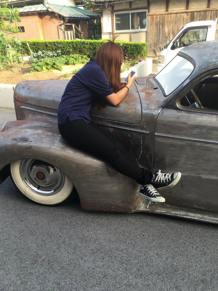 彼女 の  Y美 ちゃん は、   フェンダー に  座って