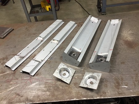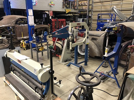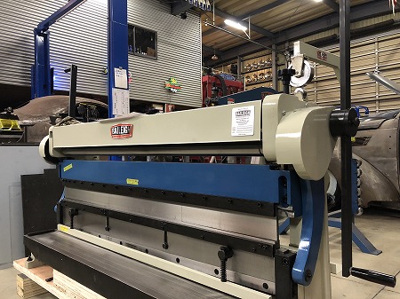 鉄板 を 切り出し、 ベンダー で 曲げたり