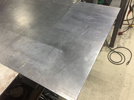 ケガキ を 入れて、 プラズマ で 切り出しまして