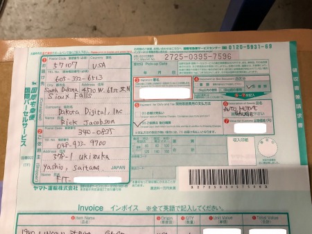 サウスダコタ州の DAKOTA DIGITAL宛に 発送し