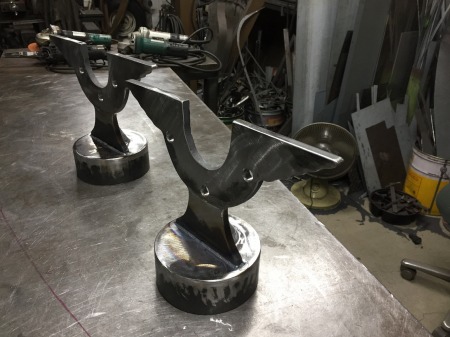 デザインを 決めたら、 分厚い 鉄板を 切り出しまして