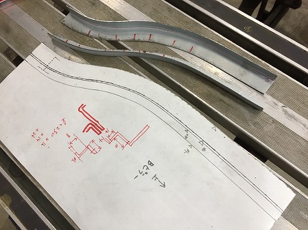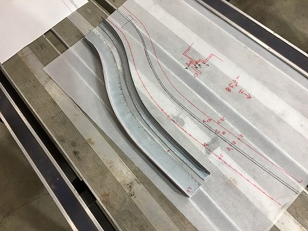 型紙 に 合せて  鉄板 を 切り出したら