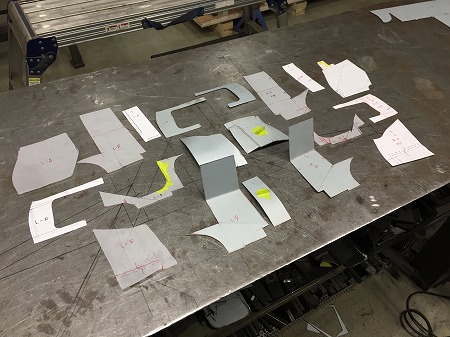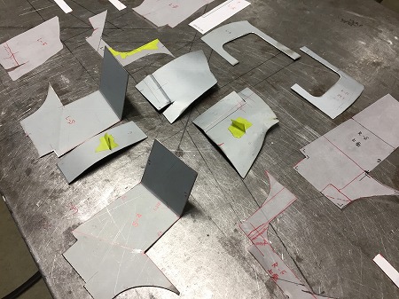 型紙、 度型 に 基づいて 切り出し、 曲げていきまして