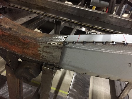 溶接の 熱で 歪まないように 定番の上で 本溶接に 進みまして