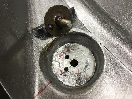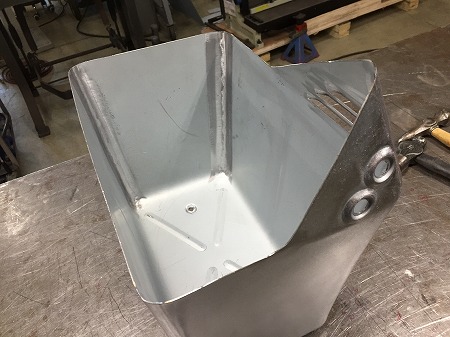 鉄板を 切だし、  全周 溶接 しまして