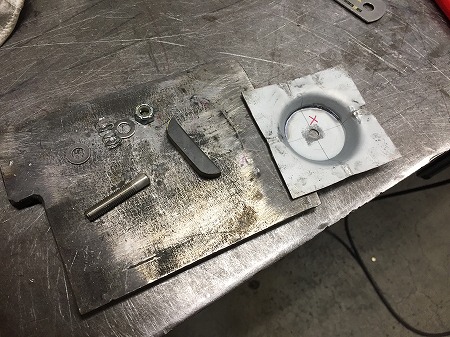 鉄板 を 切り出し、 穴を 開けた バー を ふたつ