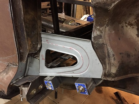 ドアポスト 下 と インナー フェンダー に あてがい