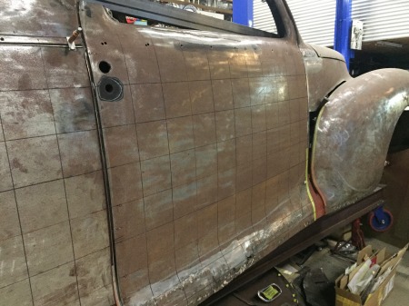 新しく 製作する スキンパネル用の 鉄板を 切り出し、