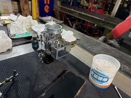キャブレターを組み立てるボルトや、動くリンケージ