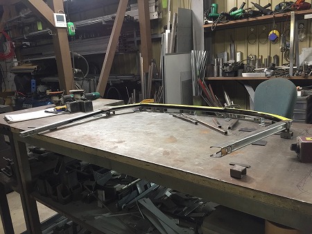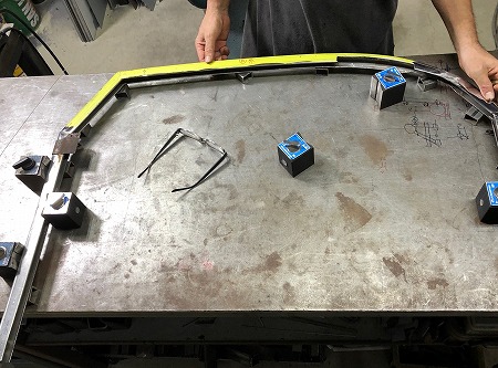 窓枠に三角窓を取り付ける枠が溶接で固定されており