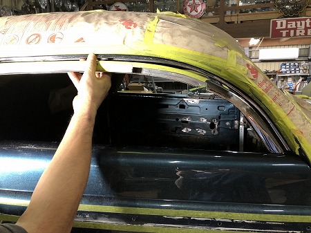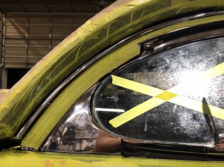 溶接を削って壊してながら、三角窓の外枠を撤去し