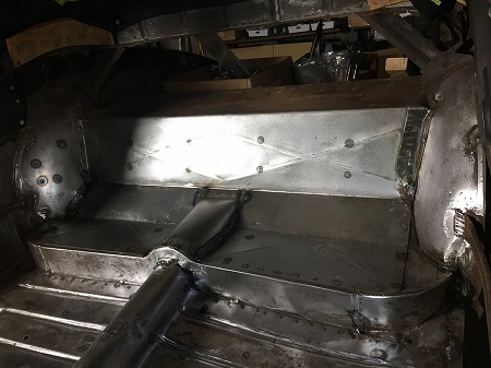 リアフレームをCノッチして、センタートンネルと