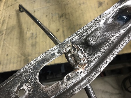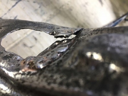 曲がっている支点部分にクラックが入ってまして
