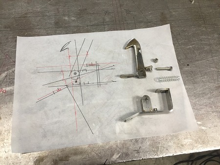 レバーとリンクの形状と、支点の位置を