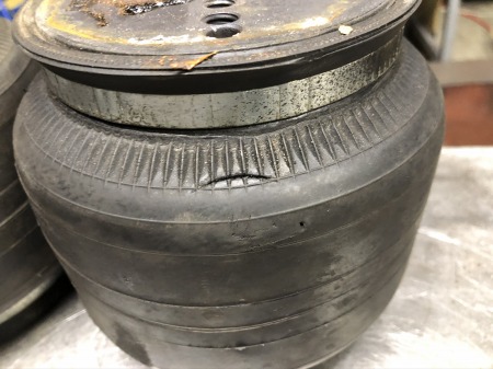 点検したら、 エアバックに 裂け目が 入って パンク してまして