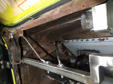 エンジンルーム側では コラムシフトの リンケージと