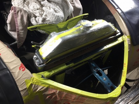 狭いインナーフェンダーと ラジエーターの間に 収めていきますが