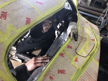 熱歪みを修正し、 溶接後を 綺麗に仕上げたら