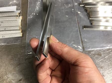 外側の溶接跡を、ピン角になるよう仕上げまして