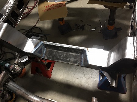 クロスメンバーの切り欠き部分を大きく切開し
