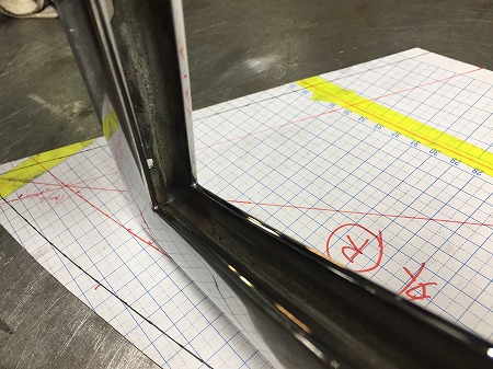 ボディの開口の型紙をとって、窓枠と合っていない