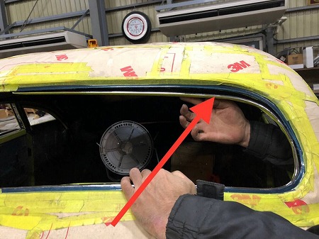 正しい形に作り直すため、ボディの窓枠の形状を