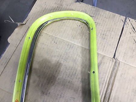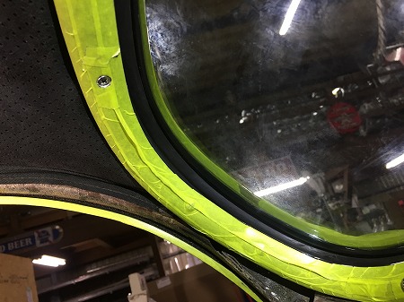 フロントガラスの外側のモールの修正を終え