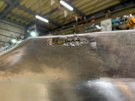 溶接跡を仕上げたら、モール穴跡の修正が完了