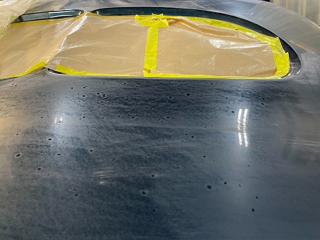 面出しを終えて、パテ粉をエアブローしたら