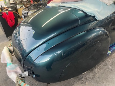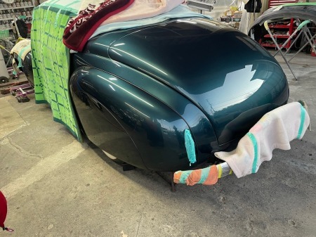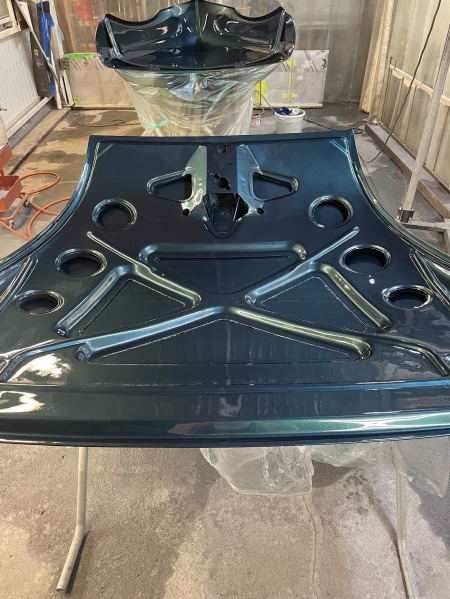 塗装屋さんに輸送して、面出し作業中