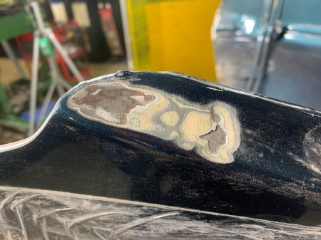 まずは塗装とパテを剥がして、鉄板の状況を