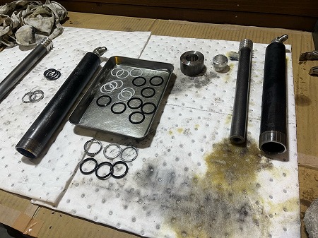 バックアップリングの点検と、シリンダーチューブの