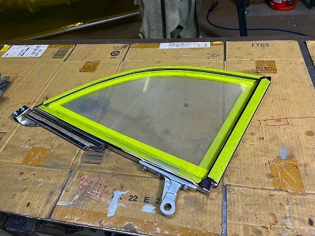 クォーターガラスの支点が割れて