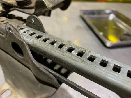 スプロケットとの隙間が広がり、レールを