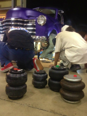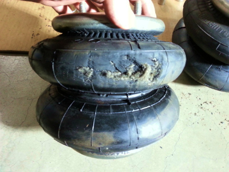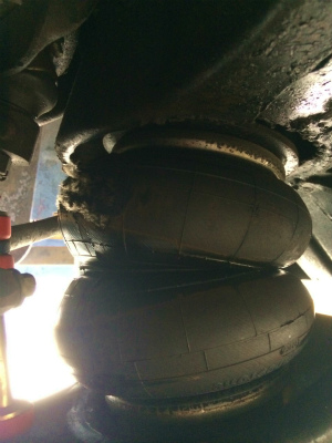 車高 が 下がって、 エア バック が 潰れたときに