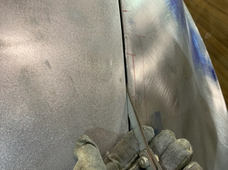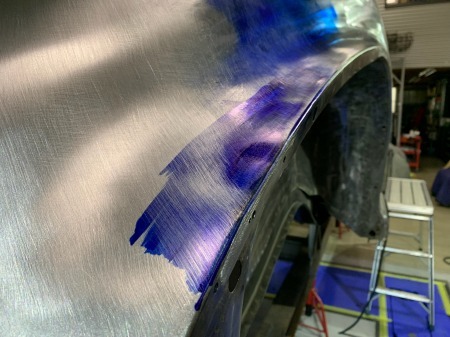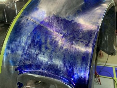 こちらも青ニスで確認しながら鈑金し