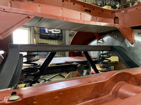 車高が下がるように、リアフレームを