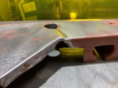 鉄板が折れたりしていると、凹んでいる