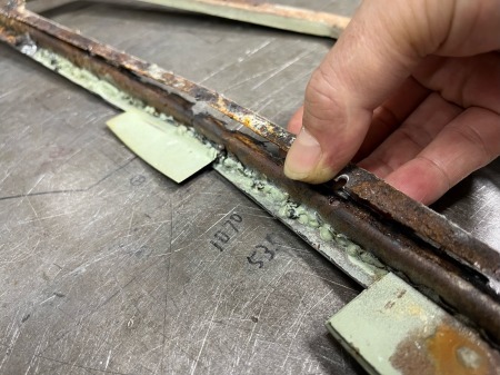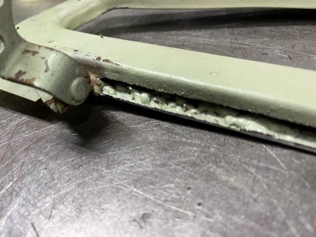 溶接も不十分なまま、上にパテを盛ってあり