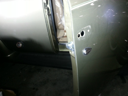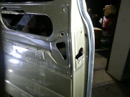 外側 から ドア を 開ける、 アウター ハンドル を 組み戻し
