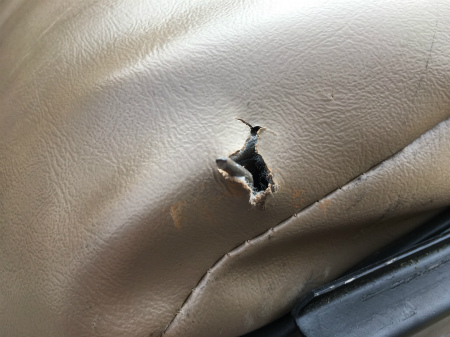 シート の 下に、 革 の 破れ が 見つかりまして