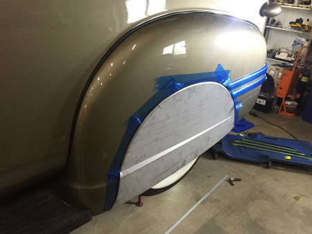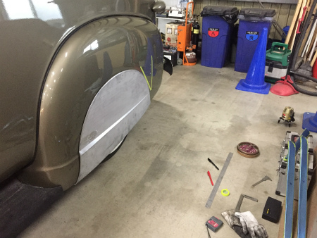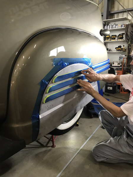 型紙 を とって、 フェンダー の 下 の 前後 に