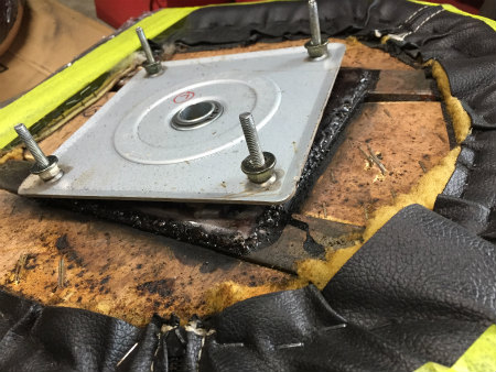 椅子 の 裏側 の 骨材 に 直接 溶接 されてた