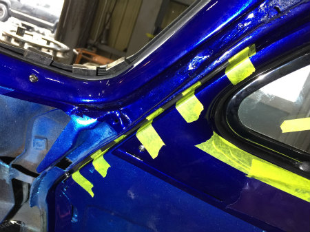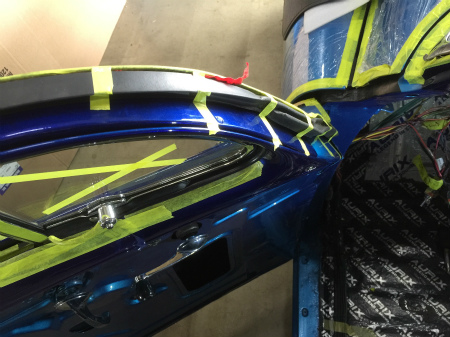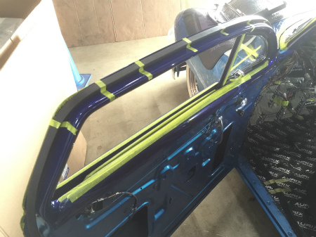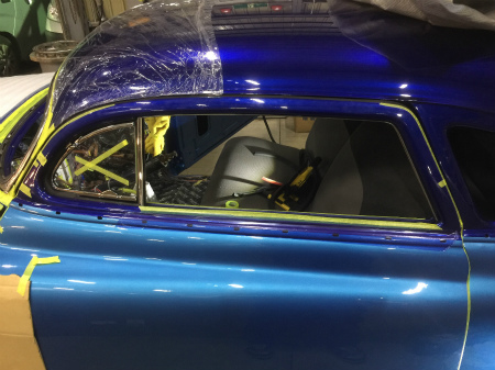 三角窓  と   サイドガラス の 組み付け を  終え、