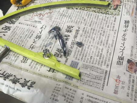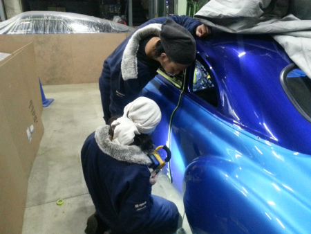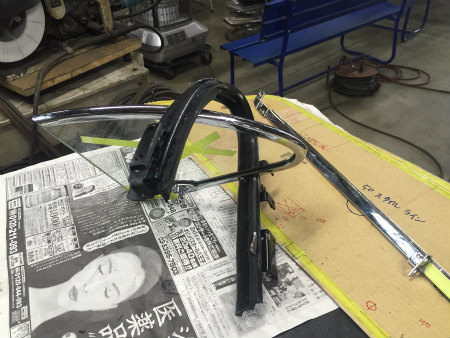 フロント ガラス の  組み立て を  終え、